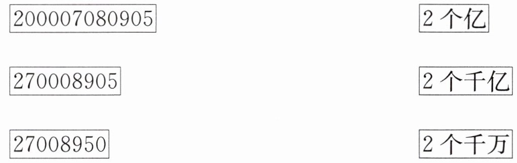 2. 200007080905—2个千亿;270008905—2个亿;27008950—2个千万。