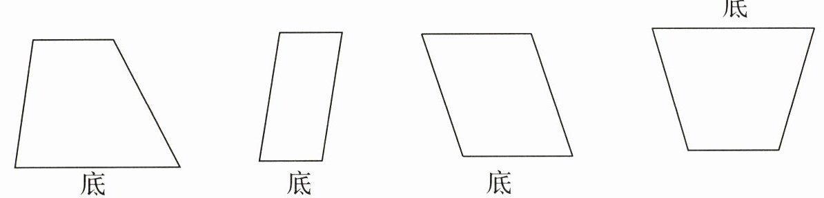 第一个梯形,从与底相对的顶点向底作垂线,顶点和垂足间线段为高。