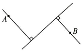2. 过$A$,$B$两点分别画已知直线的垂线。