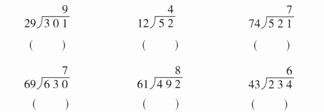 2. $ 135 ÷ 26 $ 试商时,把 26 看作 30 来试商,商会偏(