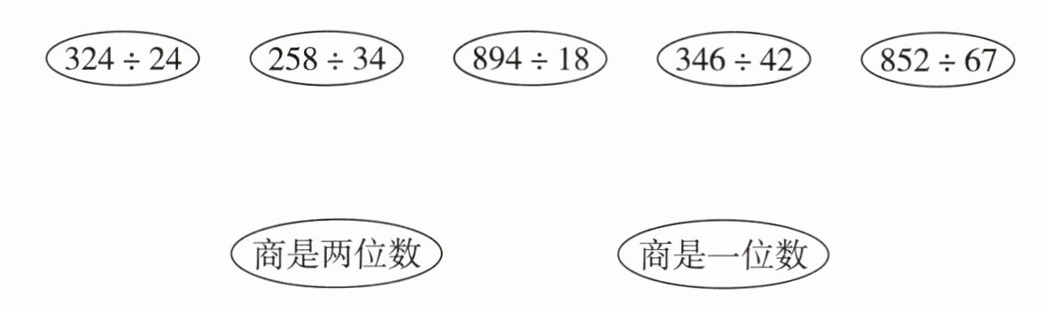商是两位数连$324÷24$,$894÷18$,$852÷67$;商是一位数连$258÷34$,$346÷42$。