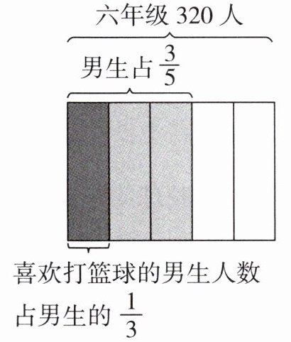 1. $180×\frac{4}{5}×\frac{3}{4}=108$(棵) 2. $320×\frac{3}{5}×\frac{1}{3}=320×\left(\frac{3}{5}×\frac{1}{3}\right)=320×\frac{1}{5}=64$(人)