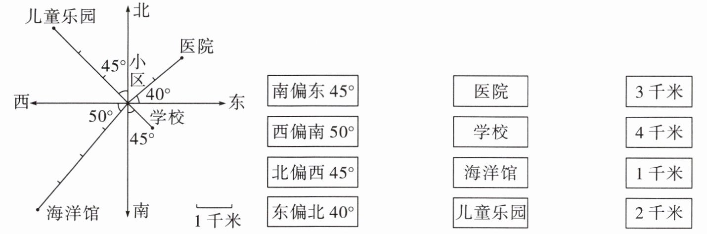 2. 在图上标出物体的位置,要先确定距离,再确定方向。(