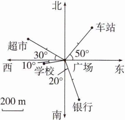 (1) 过山车在水上乐园南偏东30°方向200m处。