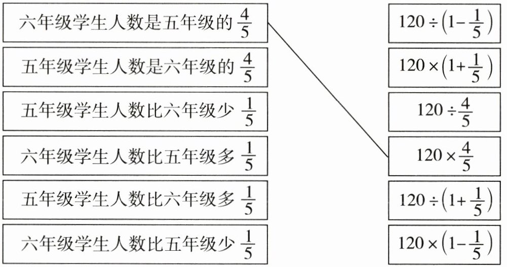 |六年级学生人数是五年级的$\frac{4}{5}$| $120÷(1 - \frac{1}{5})$ |