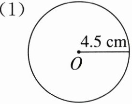 (1)周长:28.26 cm 面积:63.585 $ cm^2 $