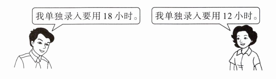 1. $\frac{1}{2}÷(\frac{1}{18}+\frac{1}{12})=3.6$(小时) 3.6<4 能录入这份稿件的一半