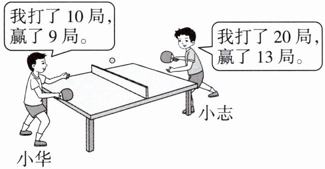 小华赢的可能性大。因为$9:10=\frac{9}{10}$,13:20=$\frac{13}{20}$,$\frac{9}{10}=\frac{18}{20}$,$\frac{18}{20}>\frac{13}{20}$(或0.9>0.65),小华赢的局数与他比赛总局数的比值比小志的大,所以小华赢的可能性大。