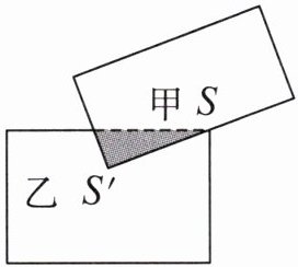 如下图,两个长方形重叠在一起,甲长方形没有重叠的部分的面积为$S$,相当于甲长方形面积的$\frac{5}{6}$;乙长方形没有重叠的部分的面积为$S'$,相当于乙长方形面积的$\frac{7}{8}$,那么$S与S'$的比是多少?
