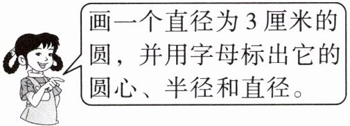 1. 先画出右图圆的几条半径和直径,再填一填。