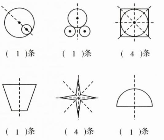 2. 画出下面轴对称图形的所有对称轴,并在( )里注明它们各有几条对称轴。