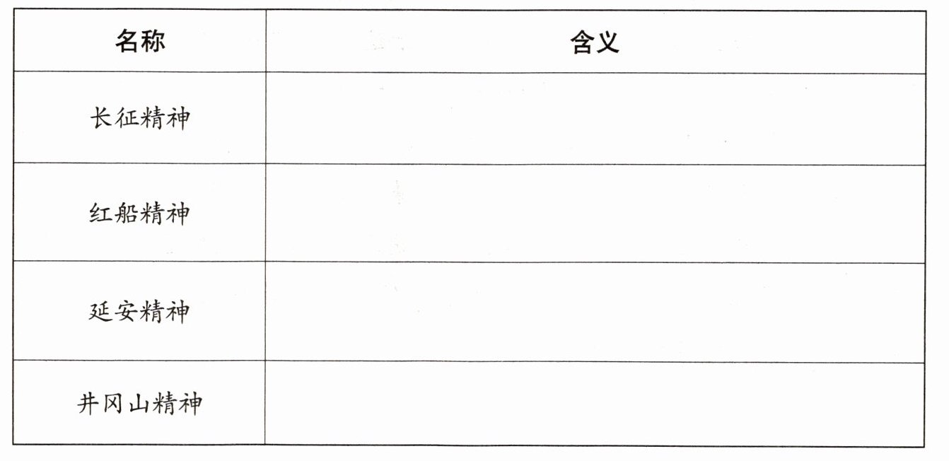 长征精神:是中国工农红军在长征中表现出的不怕牺牲、百折不挠、团结互助、忠诚爱国等精神的集中体现,其核心是革命英雄主义精神。