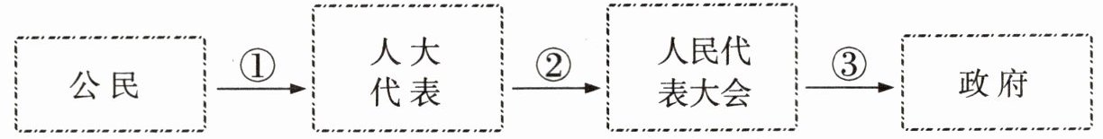 4. 如图反映了公民、人大代表、人民代表大会和政府之间的关系,选择适当的选项完成下图
