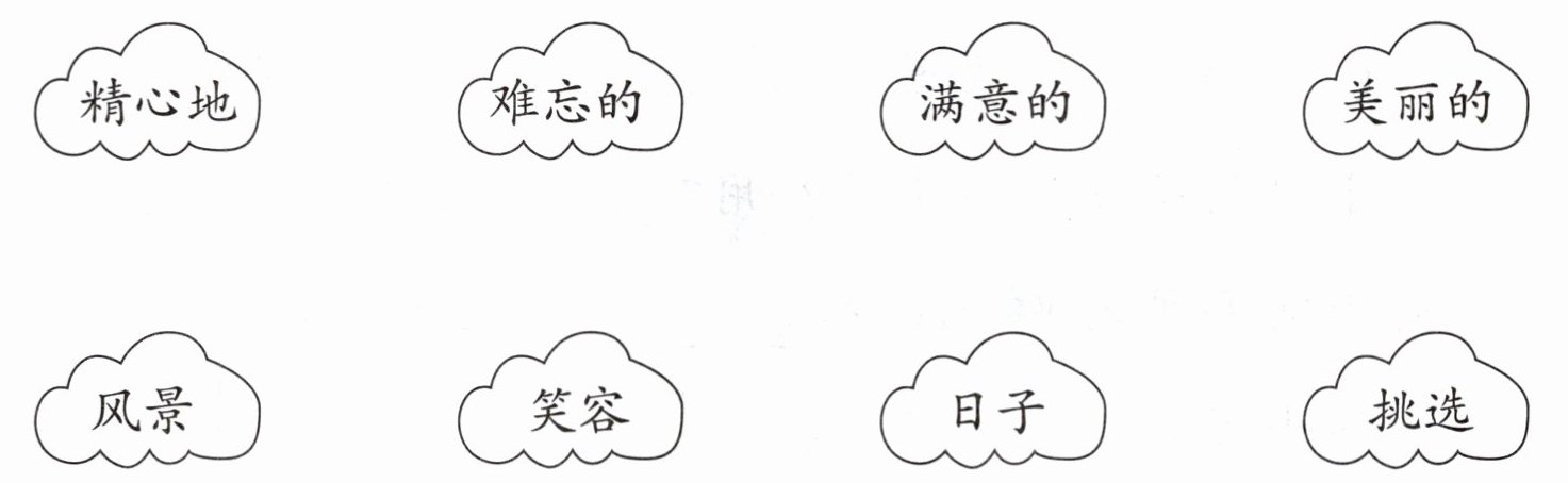 精心地——挑选 难忘的——日子 满意的——笑容 美丽的——风景