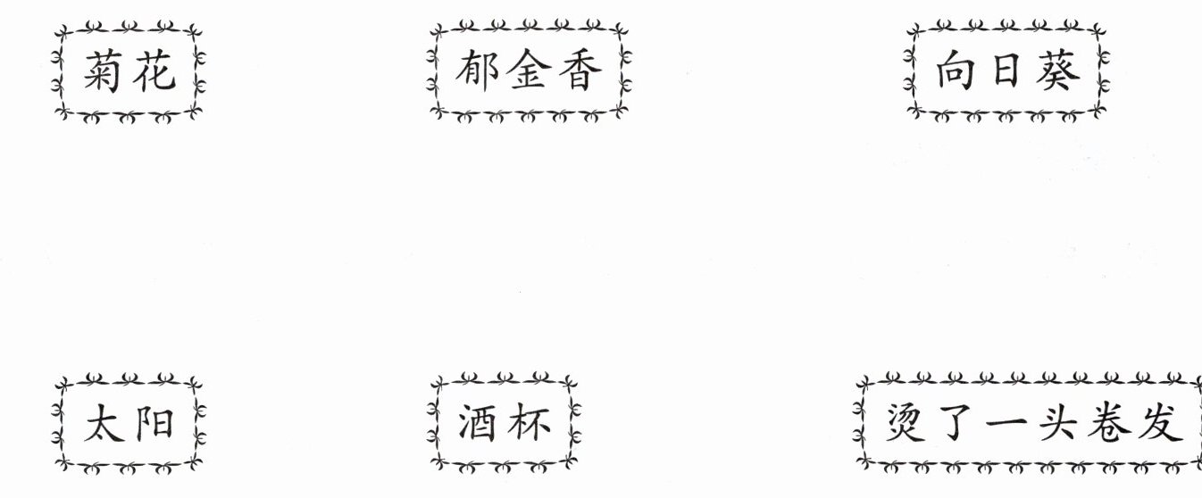 1.香香的 甜甜的 2.菊花——烫了一头卷发 郁金香——酒杯 向日葵——太阳 3.示例:桃花 一张张笑脸 4.略