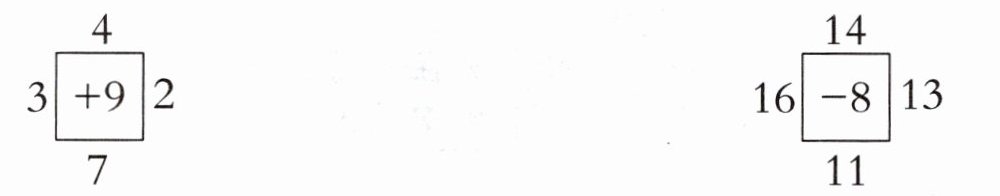 $3 + 9 = 12$ $4 + 9 = 13$ $2 + 9 = 11$ $7 + 9 = 16$