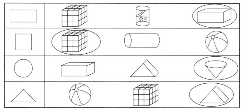 三、用哪个物体可以画出左边的图形?请把它圈出来。