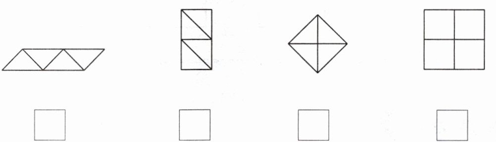 手中的4个图形不能拼成的是什么?在正确答案的下面画“√”。