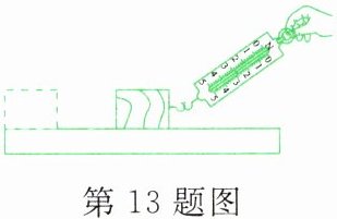 13. 如图所示是小芳在探究“滑动摩擦力的大小与哪些因素有关”的实验中的情景。小芳用弹簧测力计拉着木块,使木块在木板上沿水平方向做匀速直线运动。实验中操作的错误是