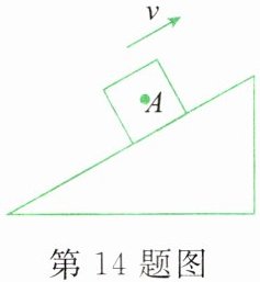 14. 如图所示,一木块A沿斜面向上滑动,请作出木块受到的重力G和斜面对它的滑动摩擦力f的示意图。