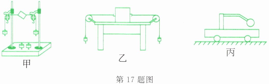 17. 在“探究二力平衡的条件”实验中,小华选择了图甲所示的装置,把小卡片两端细线绕过滑轮,并挂上钩码。