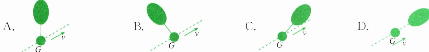 6. 一个氢气球下系一小重物,重物只在重力和绳的拉力作用下做匀速直线运动,不计空气阻力和风力的影响,重物匀速运动的方向如图中箭头所示的虚线方向,图中气球和重物 G 在运动中所处的位置正确的是 (