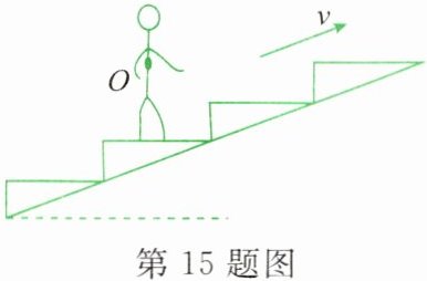 15. 一人站在电梯上随电梯一起匀速上升,如图所示,请在图中画出人的受力示意图。