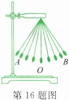 16. 为了研究摆锤的摆动,小明用细绳把摆锤悬挂起来,将摆锤从 A 点静止释放,利用频闪照相技术拍摄摆锤在相同时间间隔的位置(如图所示)。