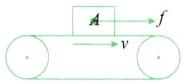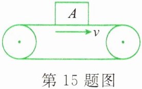 15. 如图所示,传送带以速度$v$匀速转动,请画出物体$A$刚放上去时所受摩擦力的示意图。