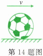 14. 如图所示是正在足球场上滚动的足球,请画出足球受到的摩擦力和重力的示意图。