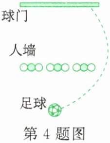 4. 在一场足球比赛中,某运动员踢出一记“香蕉球”,如图所示,足球从右侧绕过“人墙”射入球门,足球运动过程中(