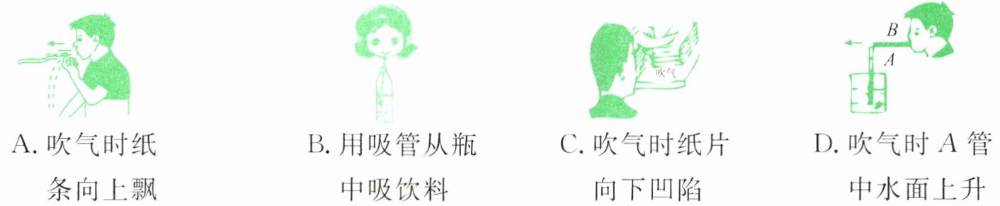 4. 下列实验中,不能说明“流速大小对流体的压强有影响”的是(