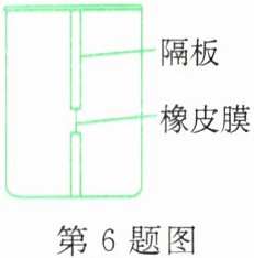 6. 用隔板将玻璃容器均分为两部分,隔板中间有一小孔,用薄橡皮膜封闭(如图所示)。下列问题中不能用该装置探究的是(