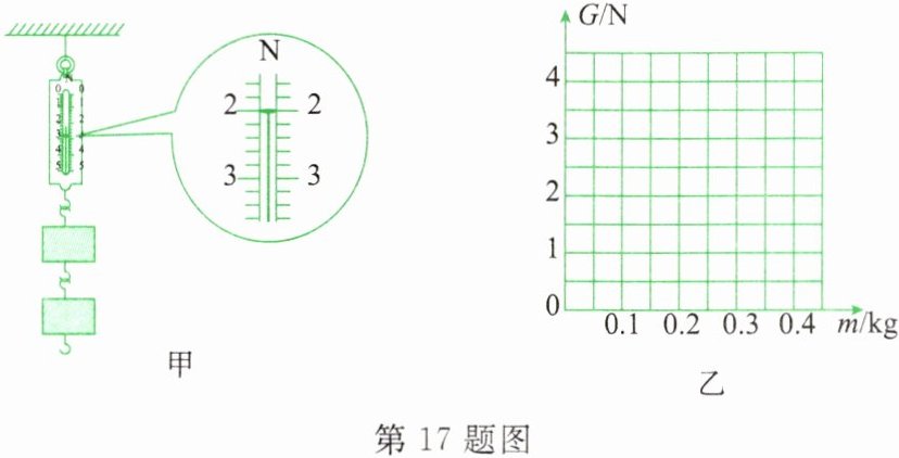 17. 地球附近的物体都要受到重力影响。某实验小组的同学们认为物体的重力大小与物体的质量有关,他们用天平、钩码、弹簧测力计进行了如下的探究。