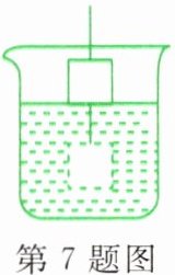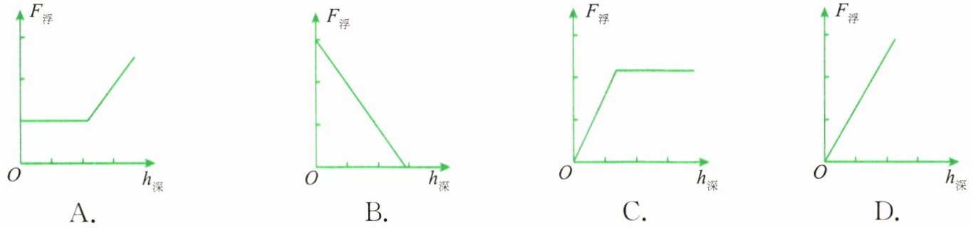 7. 将一长方体铁块按如图所示从下表面与液面刚刚接触时下放至图中虚线位置,能大致反映铁块下降过程中所受浮力的大小$F_{浮}与铁块下表面浸入液体深度h_{深}$关系的图象是 (