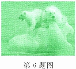 6. 如图所示,全球变暖已经日益威胁到生物的生存,一对北极熊母子无助地漂浮在一块不断融化缩小的浮冰上,若浮冰和北极熊始终处于漂浮状态,则随着浮冰的融化(