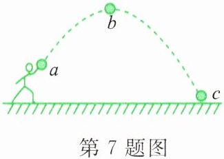 7. 如图所示,铅球从出手到将要落地的过程中,下列说法正确的是(不计空气阻力)(