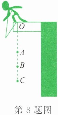 8. 有一种运动叫蹦极,如图所示是蹦极运动的简化示意图,弹性绳一端固定在O点,另一端系住运动员,运动员从O点自由下落,到A点处弹性绳自然伸直,B点是运动员受到的重力与弹性绳对运动员拉力相等的点,C点是蹦极运动员到达的最低点,运动员从O点到C点的运动过程中忽略空气阻力,则(