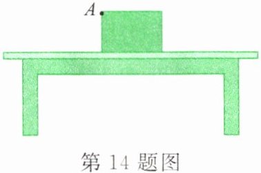 14. 如图所示,在水平桌面上有一木块,A点受到一个大小为20N,方向跟水平面成$30^{\circ}$角的斜向上推力,请画出这个推力的示意图。
