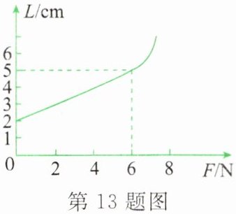 13. 某同学在探究弹簧的伸长与所受拉力的关系时,得到如图所示的图象。由图象可知:这根弹簧的原长是