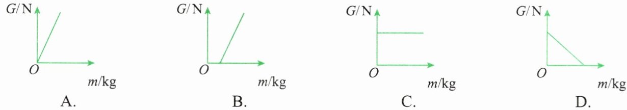 )下面四个图象中,关于物体所受重力的大小与其质量的关系,正确的是(选填字母序号)。