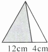 60 $×$ $\frac{3}{4}$ 45 解析:阴影三角形的底占大三角形底的$\frac{12}{12+4}=\frac{3}{4}$。又因为阴影三角形与大三角形等高,所以阴影三角形的面积占大三角形的$\frac{3}{4}$,即$60×\frac{3}{4}=45(cm^2)$。