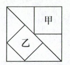 12. 如图是一个正方形,甲和乙分别是等腰三角形的两种不同的内接正方形,则图中甲与乙的面积比是( )。