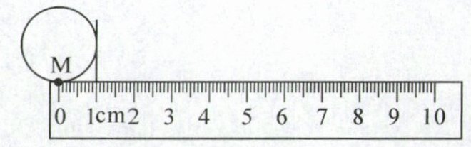11. 下图中,M是圆上一点,向右滚动一周,M点在( )cm到( )cm之间。(填整数)