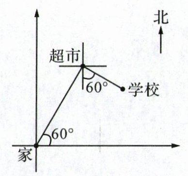 1. 朵朵从家出发,先向东偏北$60^{\circ }$走到超市,再向( )走到学校。