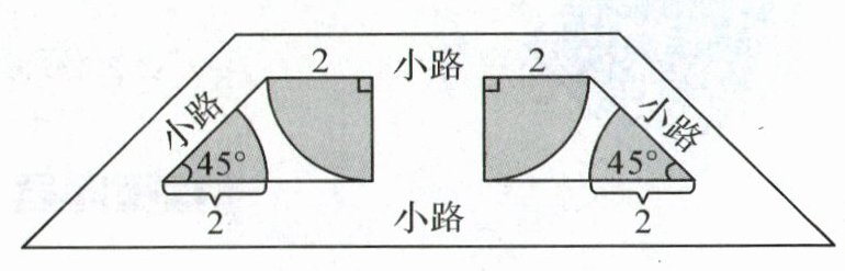 (90+45)/360×3.14×2²×2=9.42(平方米) 答:铺设草坪的面积是9.42平方米。