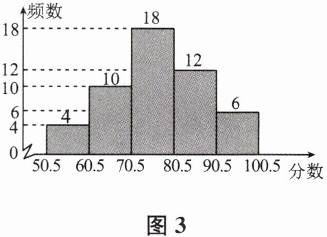 10. 某次体能测试,学校抽取了部分学生的成绩(得分为整数),整理制成如图3所示的频数分布直方图,得分在90.5~100.5的为优秀.根据图示信息,下列描述不正确的是 (