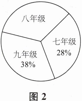 9. 阅读对人成长的影响是巨大的,一本好书往往能改变人的一生.如图2是某校三个年级学生人数分布扇形统计图,其中八年级有408人.表格是该校学生读课外书籍情况统计表.根据图表中的信息,可知该校学生平均每人读课外书的本数是 (