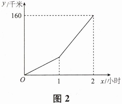 4. 一辆汽车在行驶过程中,路程$y$(千米)与时间$x$(小时)之间的函数关系如图2所示.当$0 \leqslant x \leqslant 1$时,$y关于x的函数关系式为y = 60x$;当$1 \leqslant x \leqslant 2$时,$y关于x$的函数关系式为