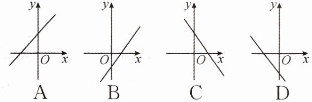 1. 已知正比例函数$y = kx(k \neq 0)的函数值y随x$的增大而减小,则一次函数$y = x + k$的图像大致是 (